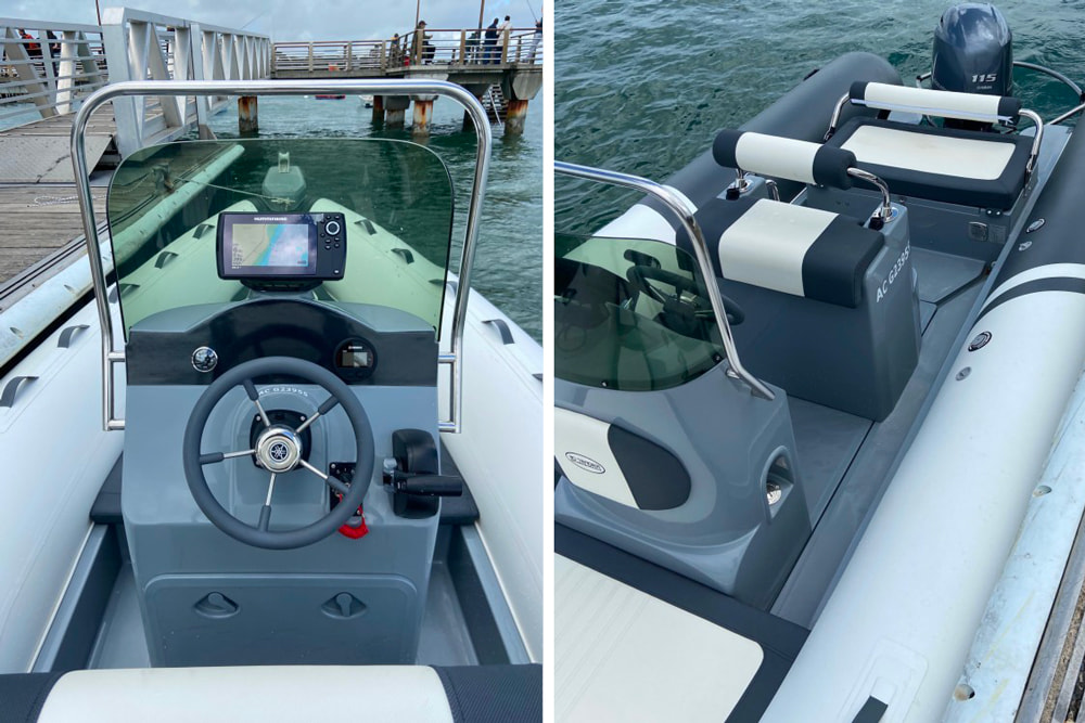 Semi-rigide neuf (2021), extrêmement maniable, très facile d’utilisation et bien conçu, ce bateau vous surprendra, par ses capacités de rangement, sa vie à bord, par son comportement et son passage en mer. Équipé d’un moteur de 115 CV, vous vous rendrez rapidement à votre destination, et il vous permettra de tracter ski nautique, Wake Board et bouée. Les destinations pour vos sorties à la journée ne manquent pas sur le Bassin, îles aux oiseaux, Dune du Pilat, Cap Ferret, Banc d’Arguin…