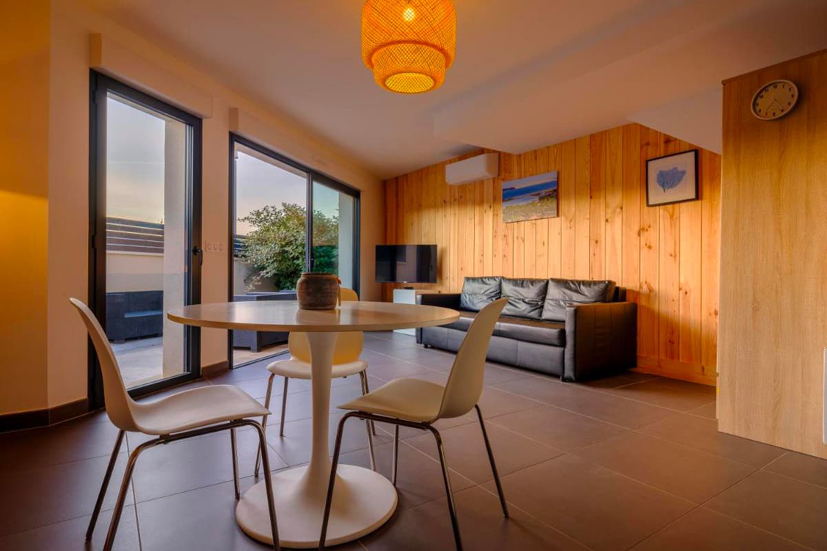 Les appartements vont studio 1 pers (30m2) à l’appartement de 3 chambres pour 6 personnes (80m2) et offrent tous les aménagements et équipements nécessaires à votre séjour : cuisine entièrement équipée (frigo, lave-vaisselle, micro-ondes, machine à café, bouilloire), une télévision par satellite à écran plat ainsi qu’une salle de bains privative avec douche, articles de toilette gratuits et sèche-cheveux. Tous les logements bénéficient également d’un parking privatif, une connexion Wi-Fi gratuite et une terrasse avec vue sur le bassin d’Arcachon ou le jardin.