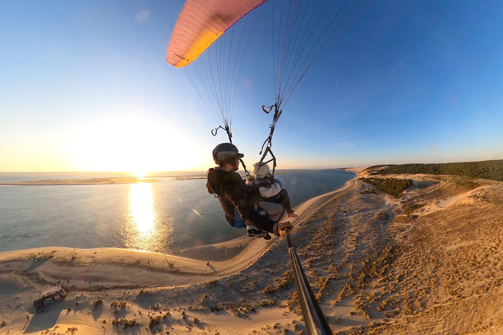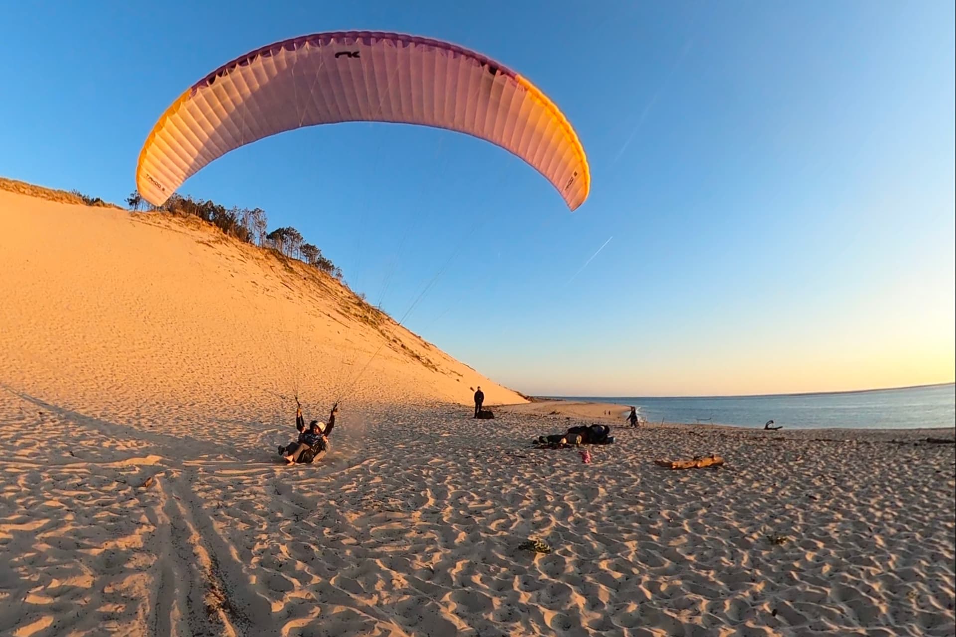 Dune parapente vous propose des baptêmes en parapente sur la dune du Pyla. Nous proposons différentes formules de vol, d’une durée allant de 10 à 30 minutes, avec des options comme la vidéo. Les tarifs varient de 60€ à 200€, en fonction de la prestation choisie.