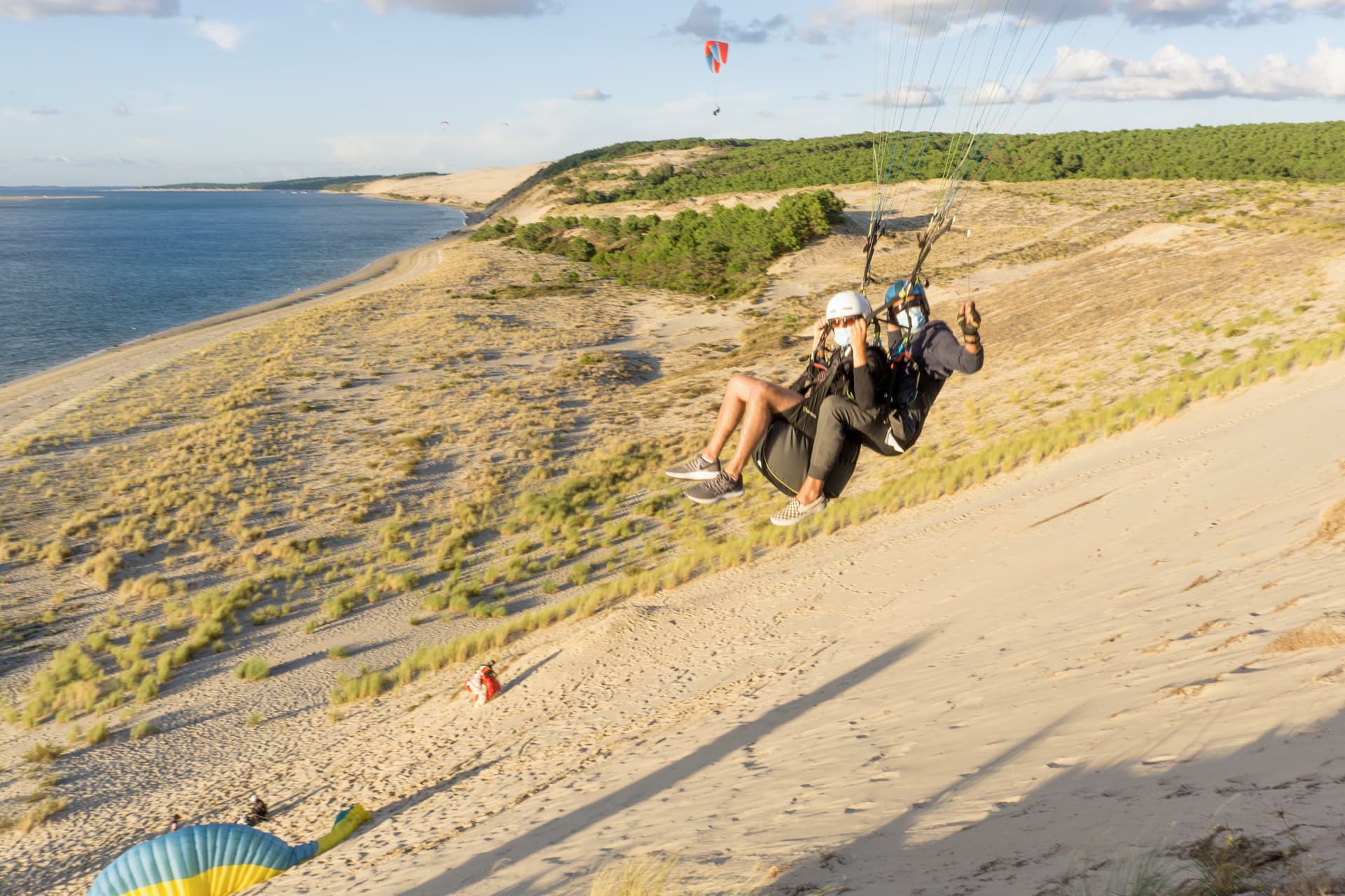 Nous sommes ouverts de début avril à fin septembre. Les vols s’effectuent dans 95% des cas l’après-midi. Il faut réserver à l’avance via notre site internet : www.dune-parapente.com. Nous vous contactons la veille afin de vous donner l’heure de rendez-vous en fonction des dernières prévisions météo.