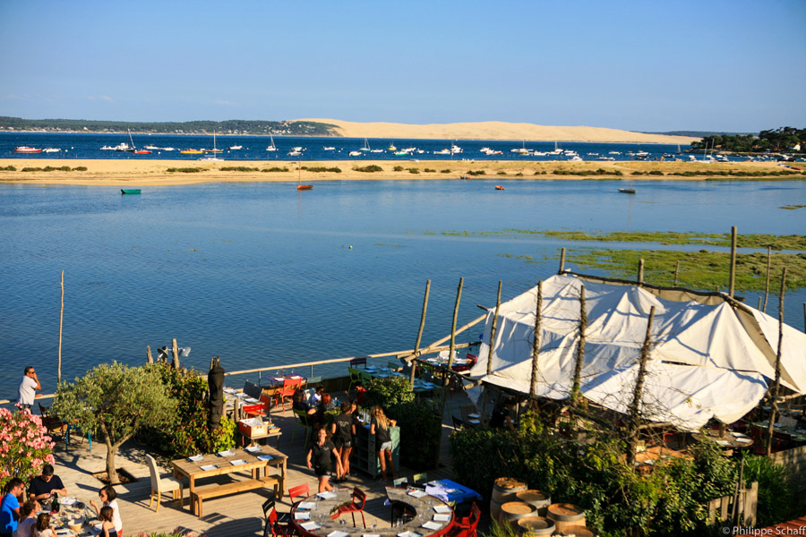 A la Cabane du Mimbeau huitres et produits de la mer vous sont servis, en salle ou en terrasse, les pieds dans l’eau, d’une fraîcheur et d’une saveur incomparables. Un endroit magique face à la conche du Mimbeau et la Dune du Pilat.