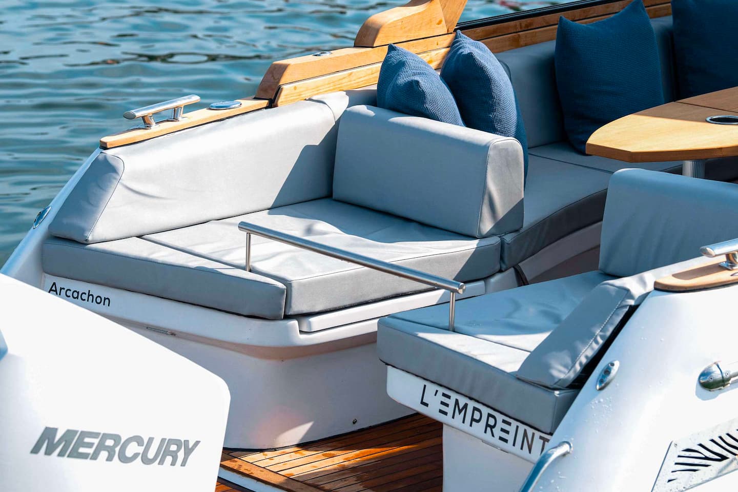 - L’EMPREINTE : balade de 6 heures incluant prestations à bord à la carte et déjeuner à terre dans un des restaurants de la Presqu’île. Jusqu’à 10 personnes.