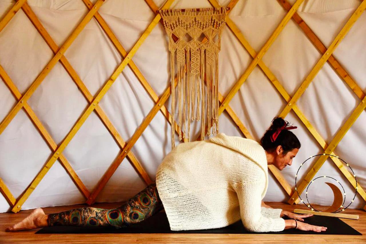 Pauline propose des cours de yoga toute l’année sur la presqu’île du Cap Ferret à domicile ou en petit groupe (4 personnes max) sur une terrasse en extérieure.