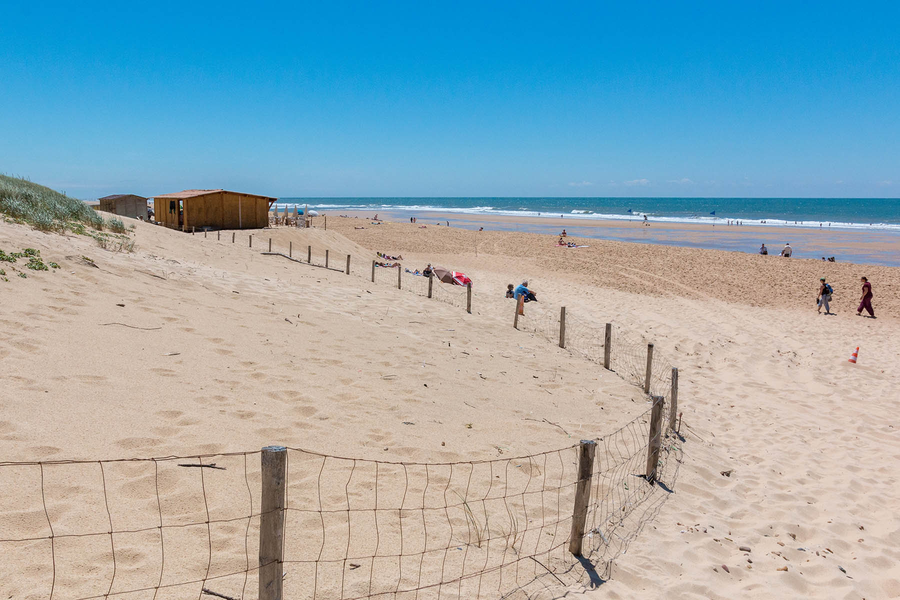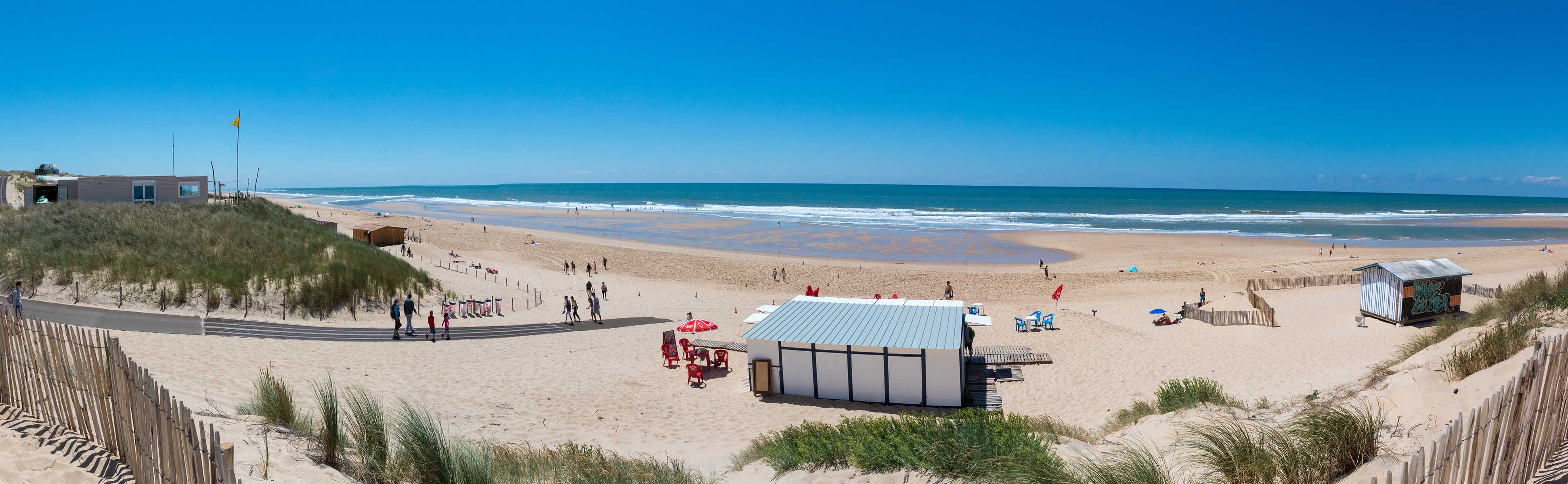 Accessible par des caillebotis toute l’année, la plage est surveillée de mi-juin à mi-septembre. La proximité du village en fait la plage familiale par excellence. Soleil, sable blanc, baignade surveillée et château de sable rythmeront vos journées et celles des plus petits.