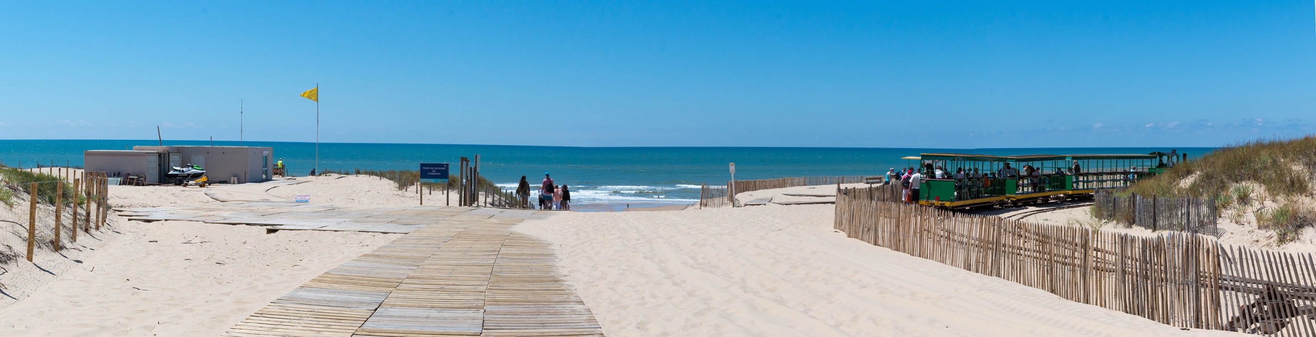 Au Cap Ferret, la plage de L’Horizon est considérée comme la plage principale du village. Egalement appelée « Plage du Petit Train » elle est en effet l’un des deux arrêts du typique Petit Train du Cap Ferret reliant la jetée Bélisaire côté Bassin, à la la plage côté océan.