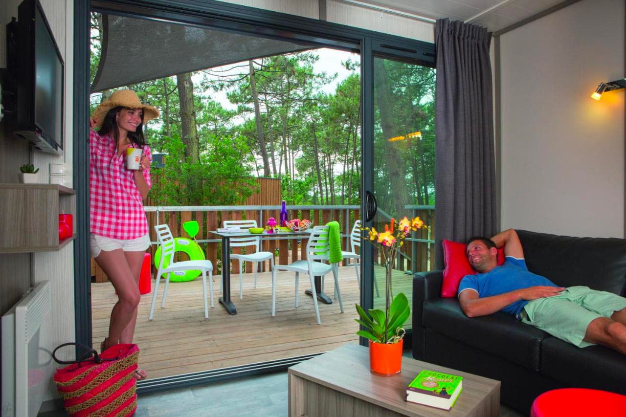- Lodge 3 Pièces 6 Personnes adapté PMR : 42m² ou 46m² avec cuisine, canapé-lit, deux chambres avec 1 lit double et deux lits simples jumelables.